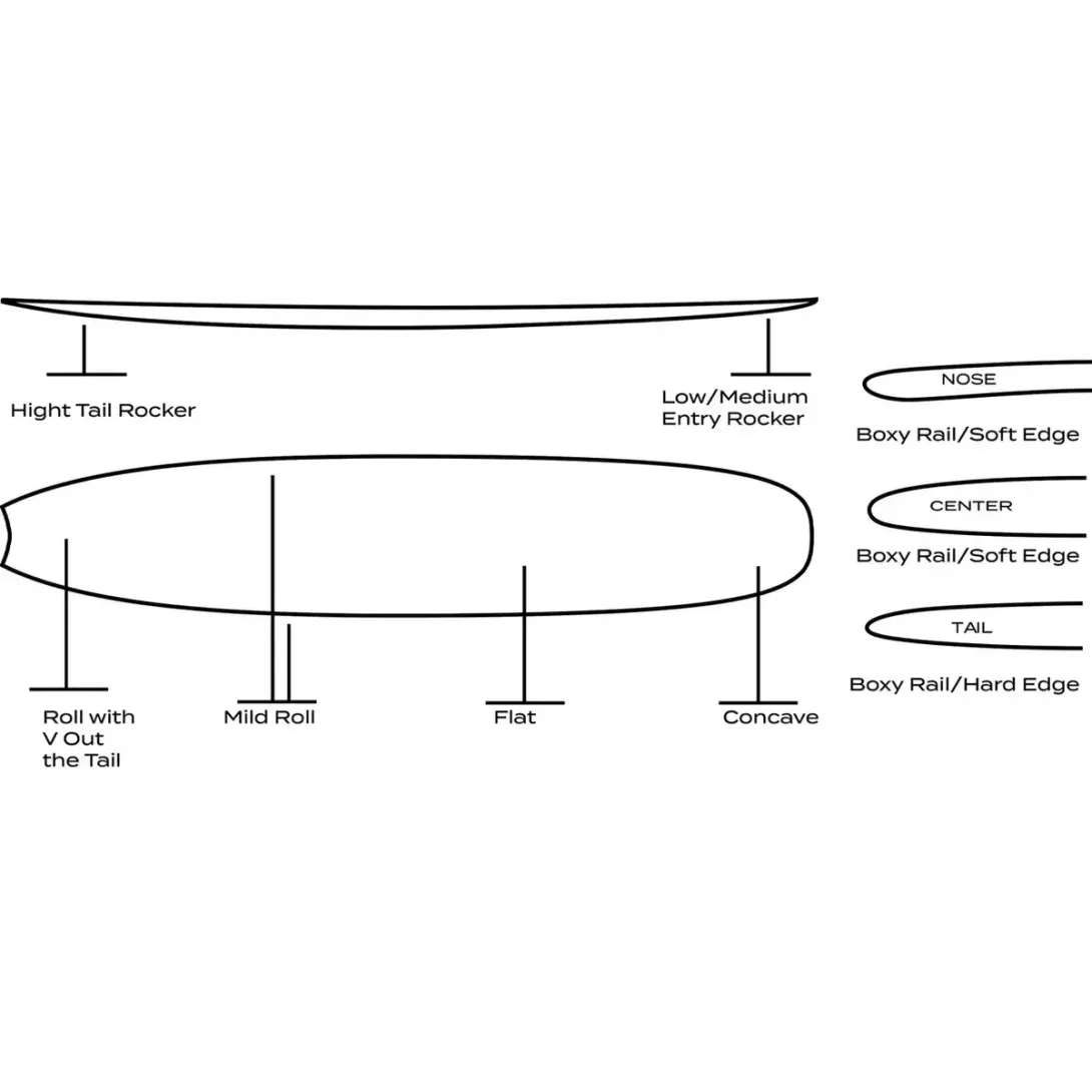 - Longboard tip-to-tail classico: permette un approccio tradizionale al surf e massimizza divertimento e performance.