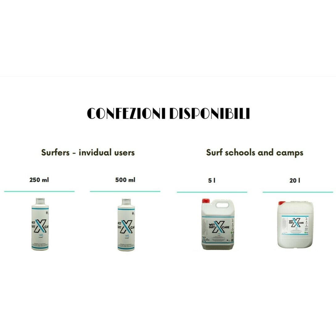 Comprendiamo le esigenze specifiche dei professionisti. WetsuitXCare è progettata per soddisfare le esigenze delle scuole di surf, dei centri di immersione e dei negozi specializzati offrendo un prodotto che combina prestazioni, facilità d'uso e rispetto per l'ambiente. Solo l'1% del prodotto deve essere miscelato con acqua.