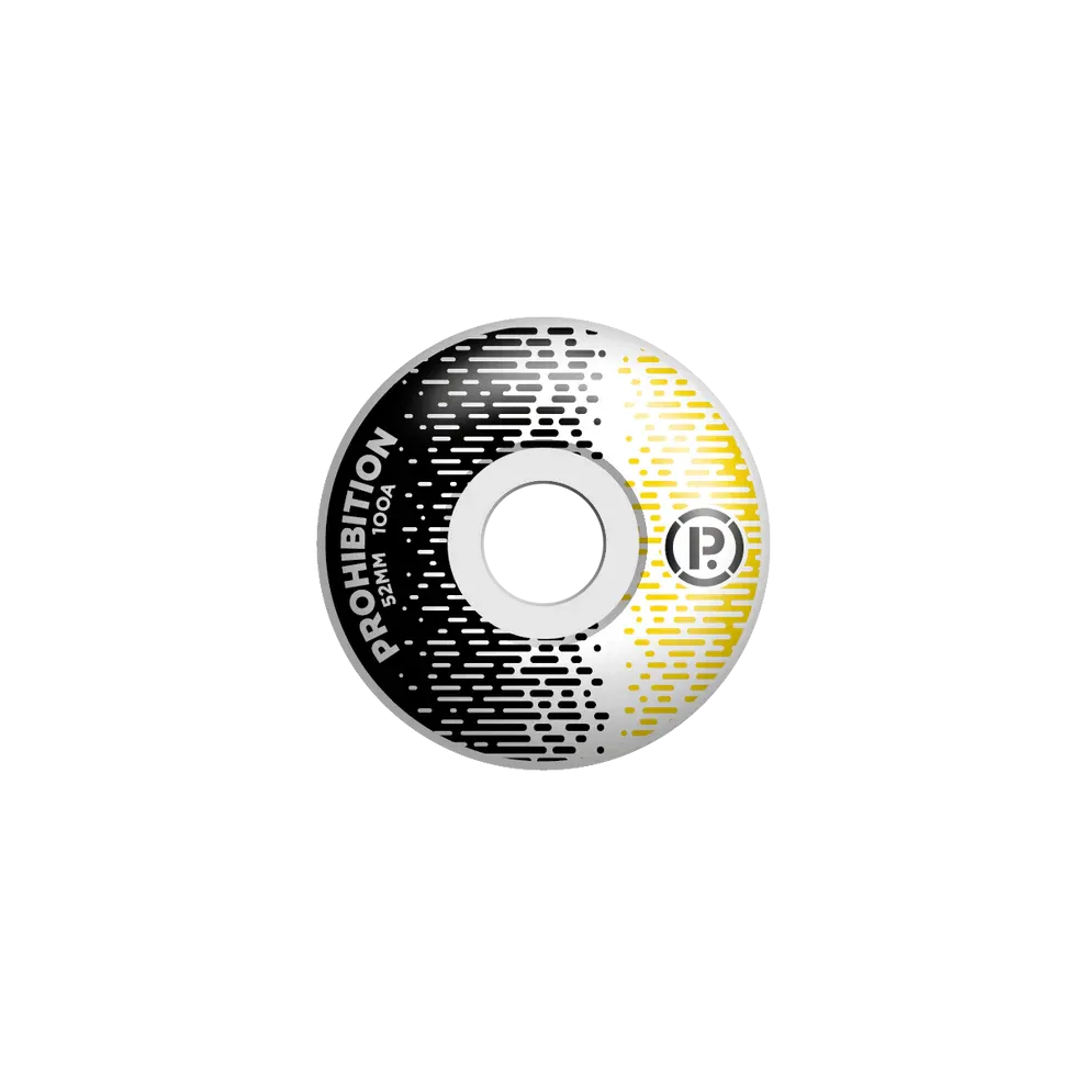 - Ruote Prohibition 52 × 32 mm con cuscinetti ABEC 5 e spacers — rotolamento fluido e velocità costante.